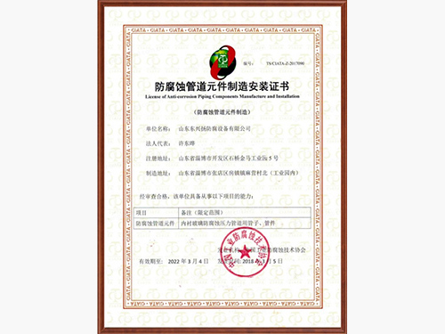山東東興揚(淄博五環(huán))防腐設(shè)備有限公司是專業(yè)的鋼襯玻璃廠家,鋼襯玻璃,鋼襯玻璃管道等產(chǎn)品使用壽命長,造價低,集開發(fā)、設(shè)計、生產(chǎn)、經(jīng)營于一體的專業(yè)性的工業(yè)防腐單位,被評選為中國 工業(yè)防腐蝕技術(shù)協(xié)會會員企業(yè)單位。